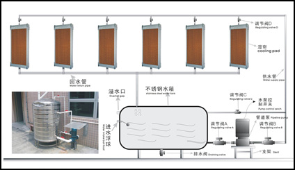 不要將系統(tǒng)內(nèi)的水溢出來(lái)。如果水位太高,濕簾的底部將一直被泡在水中變得過(guò)分充水,這將影響介質(zhì)的自給水系統(tǒng),縮短其使用壽命